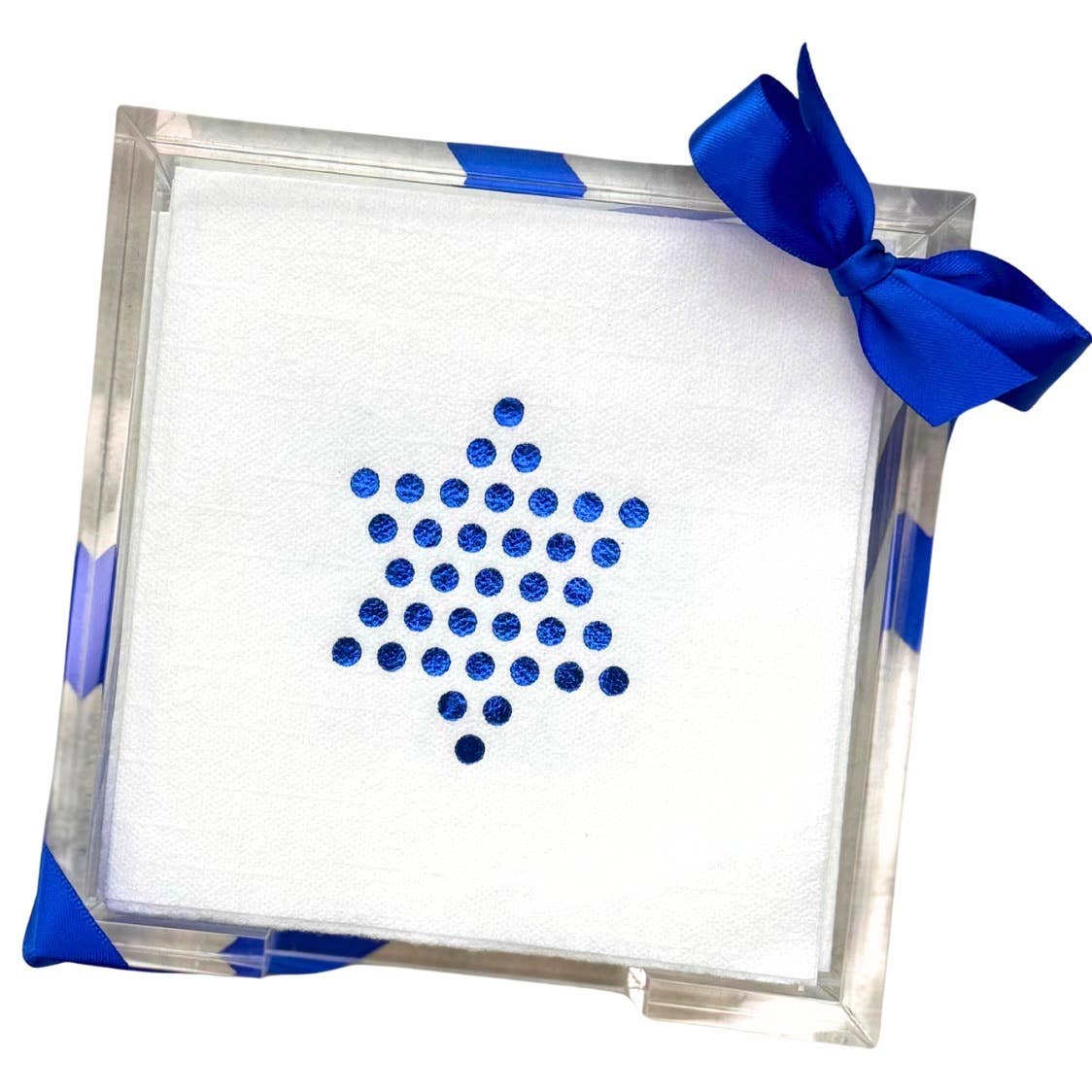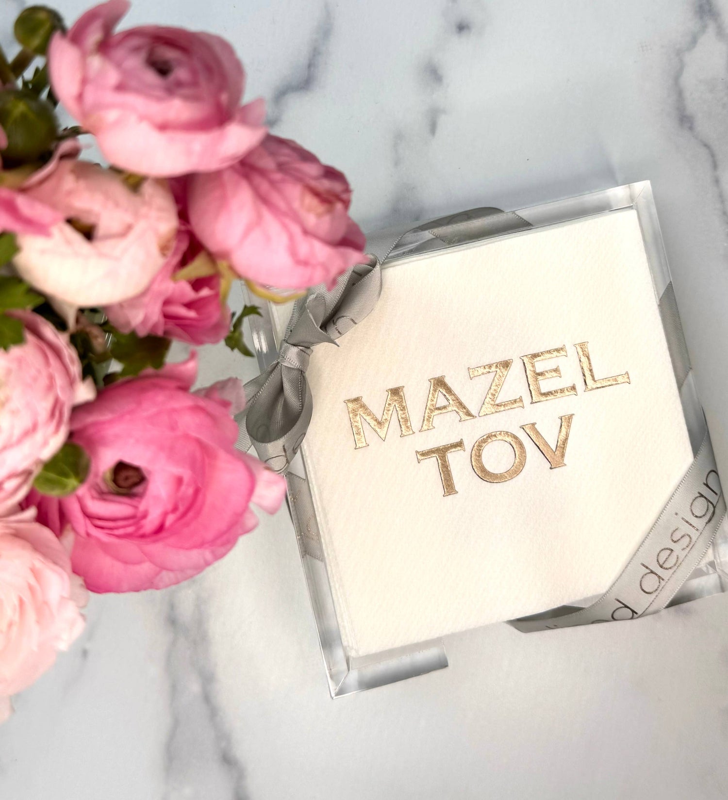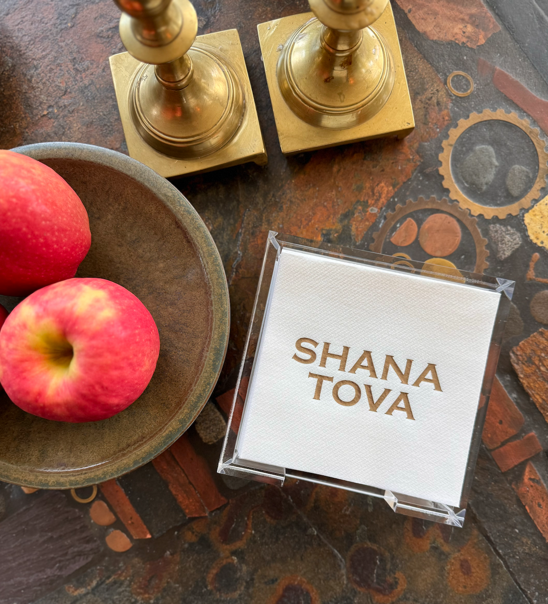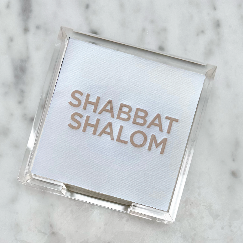 Our heavy-weight acrylic trays are both beautiful and functional. They have a unique cut-out on one side to add function to form. The crystal clear, 8mm thick acrylic has a nice heft and a clean look. Each tray contains 24 cloth-like disposable napkins with a foil embossed message that has a rich, letter-press effect that is several cuts above your average paper cocktail napkin. Elevate your hosting or bring this to your favorite hostess to add some chic style and fun.