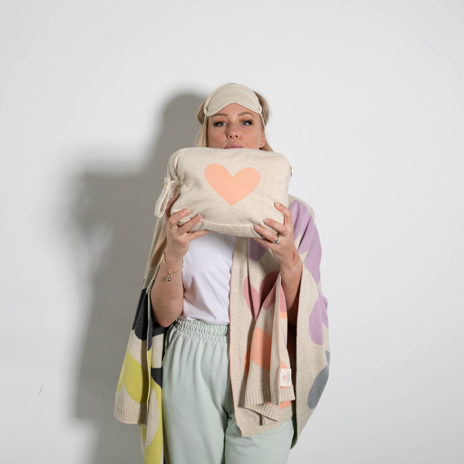 Blush Hearts Organic Cotton Travel Blanket and Eye Mask Set: Pastel