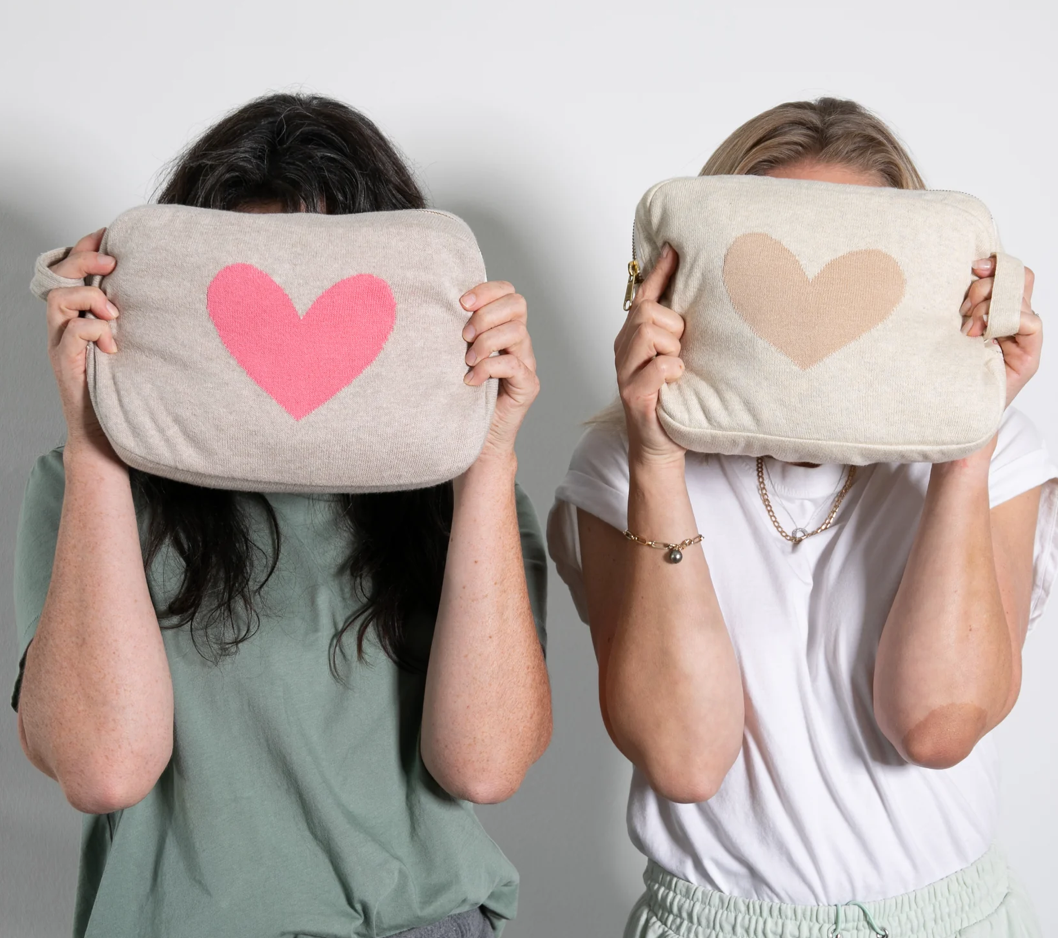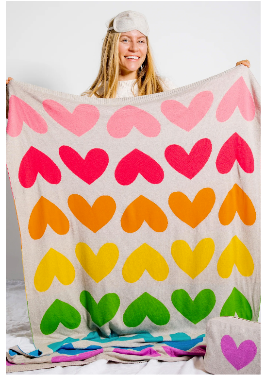 Let’s get to the heart of the matter.  Our luxe travel set with a cheerful rainbow of pop graphic hearts has a mod and retro vibe all at once, and it couldn’t be more comfortable.