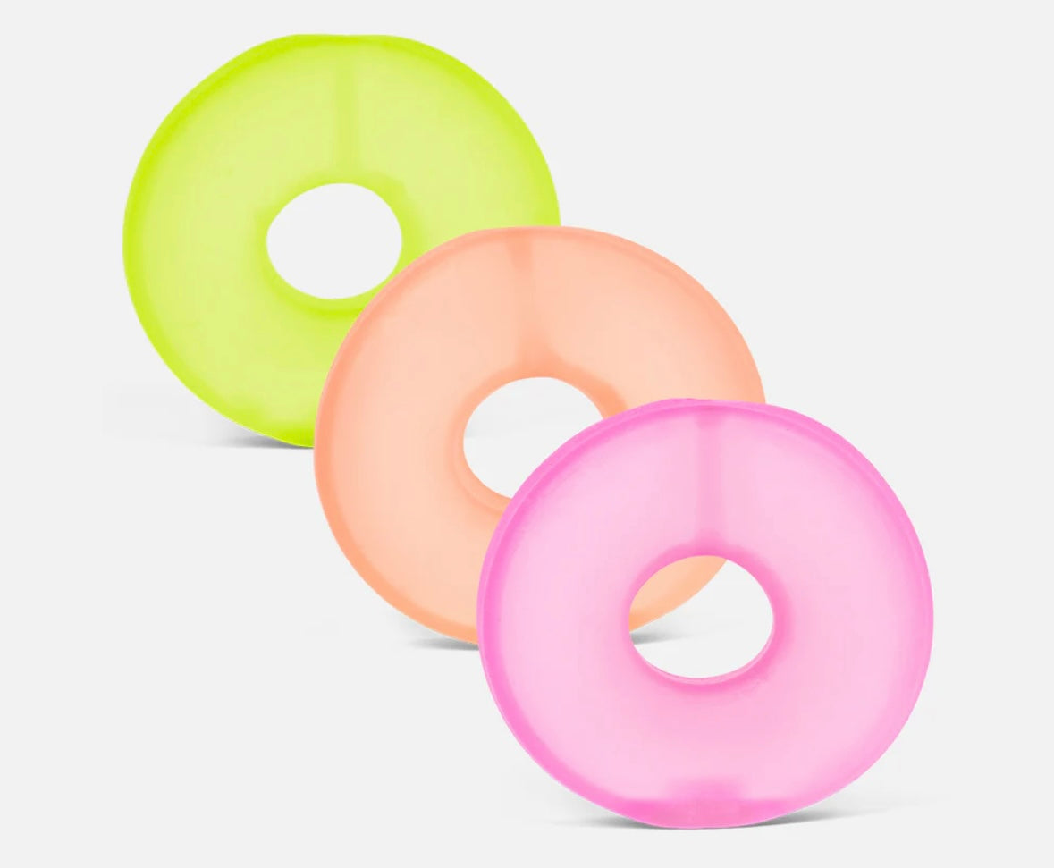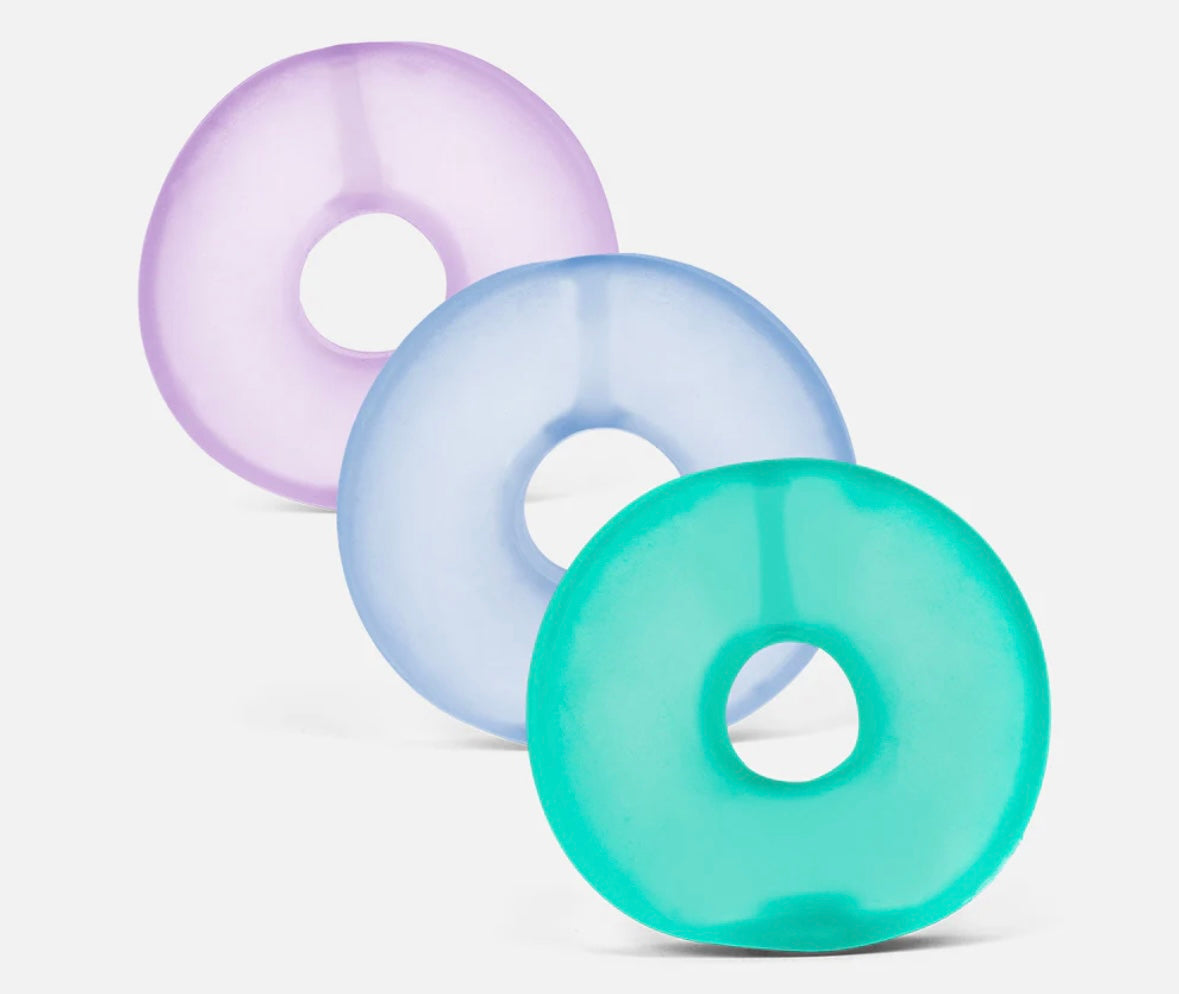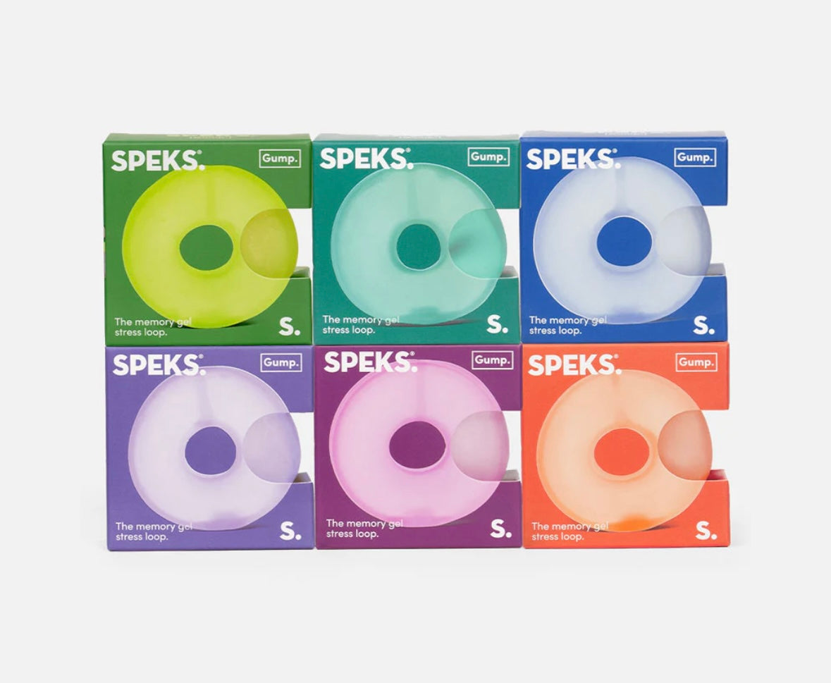 Soft and squishy stress loops with a memory gel filling in a rainbow of colors.