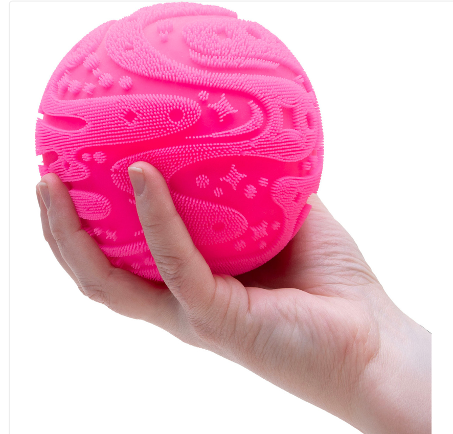 - Oversized squishy ball with fuzzy texture
